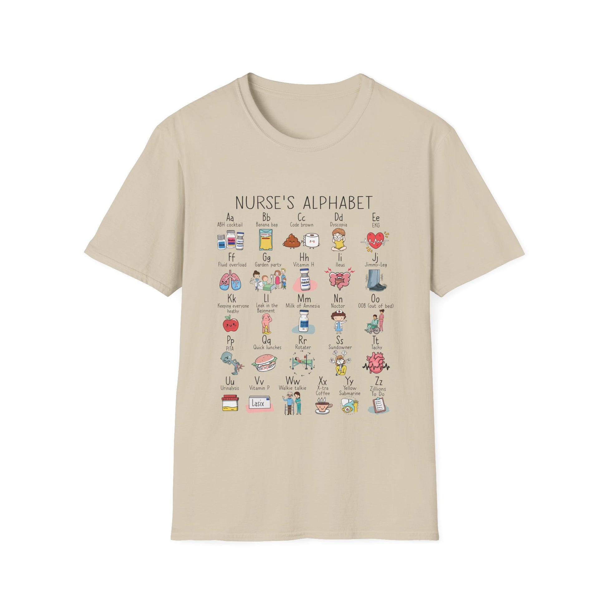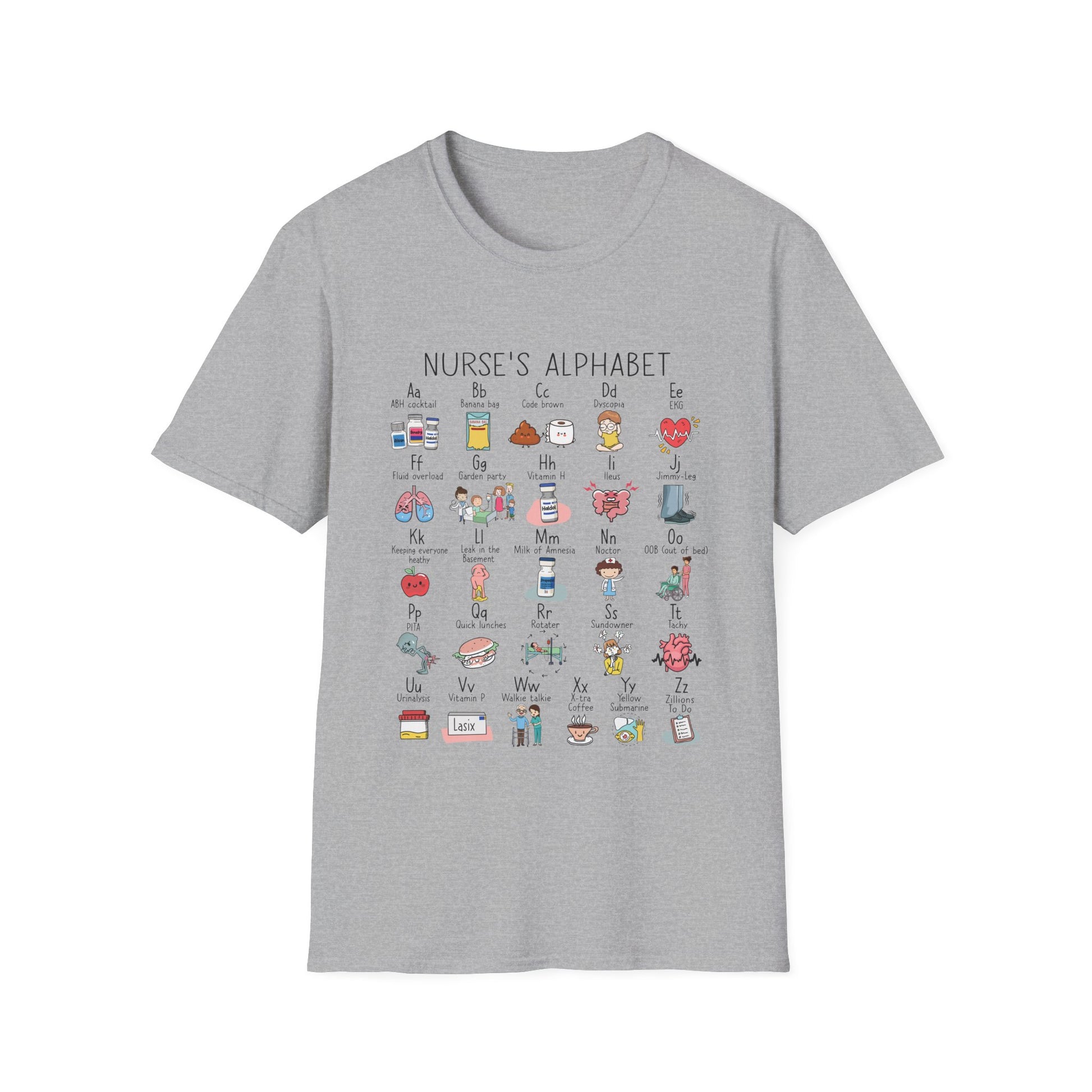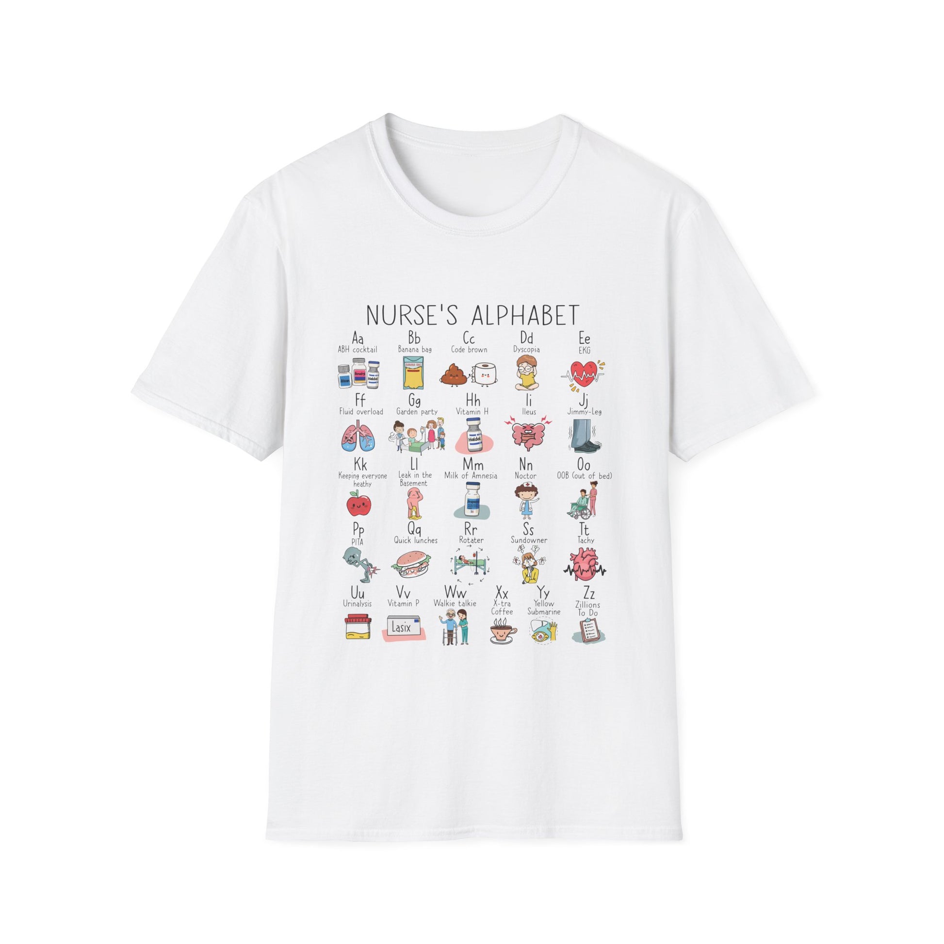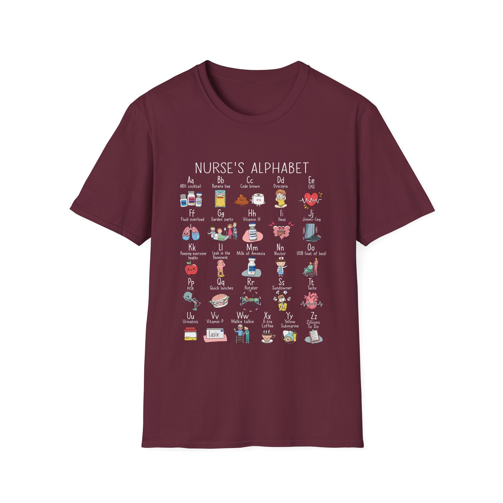 Nurse Alphabet Shirt, A-Z Nursing Letters Tee, RN LPN CNA Gift, Nurse Life Shirt, Cute Scrub Top, Healthcare Worker T-Shirt, nurse gift