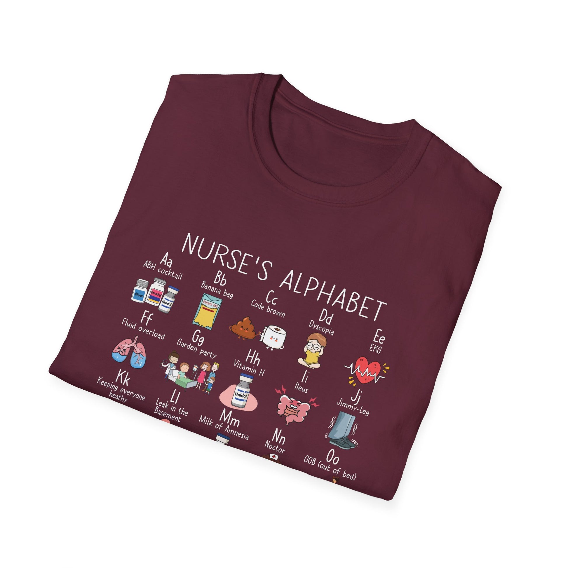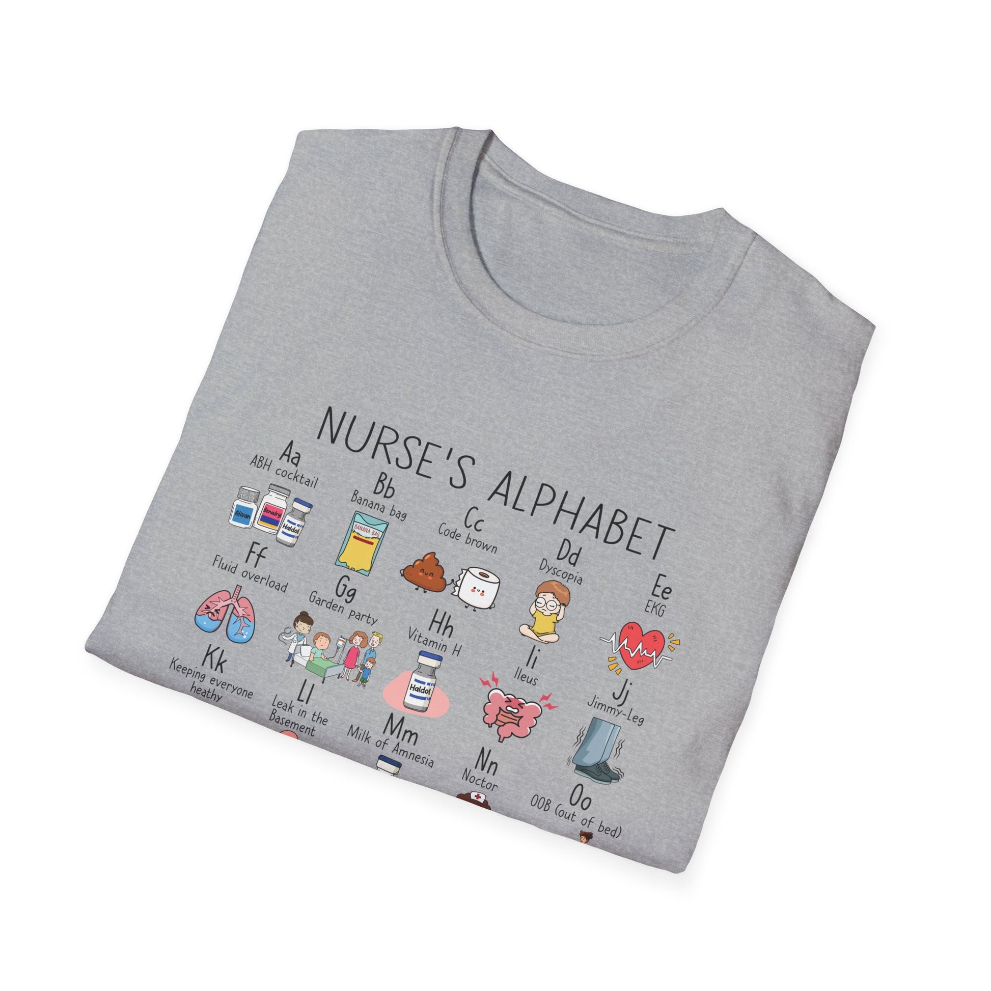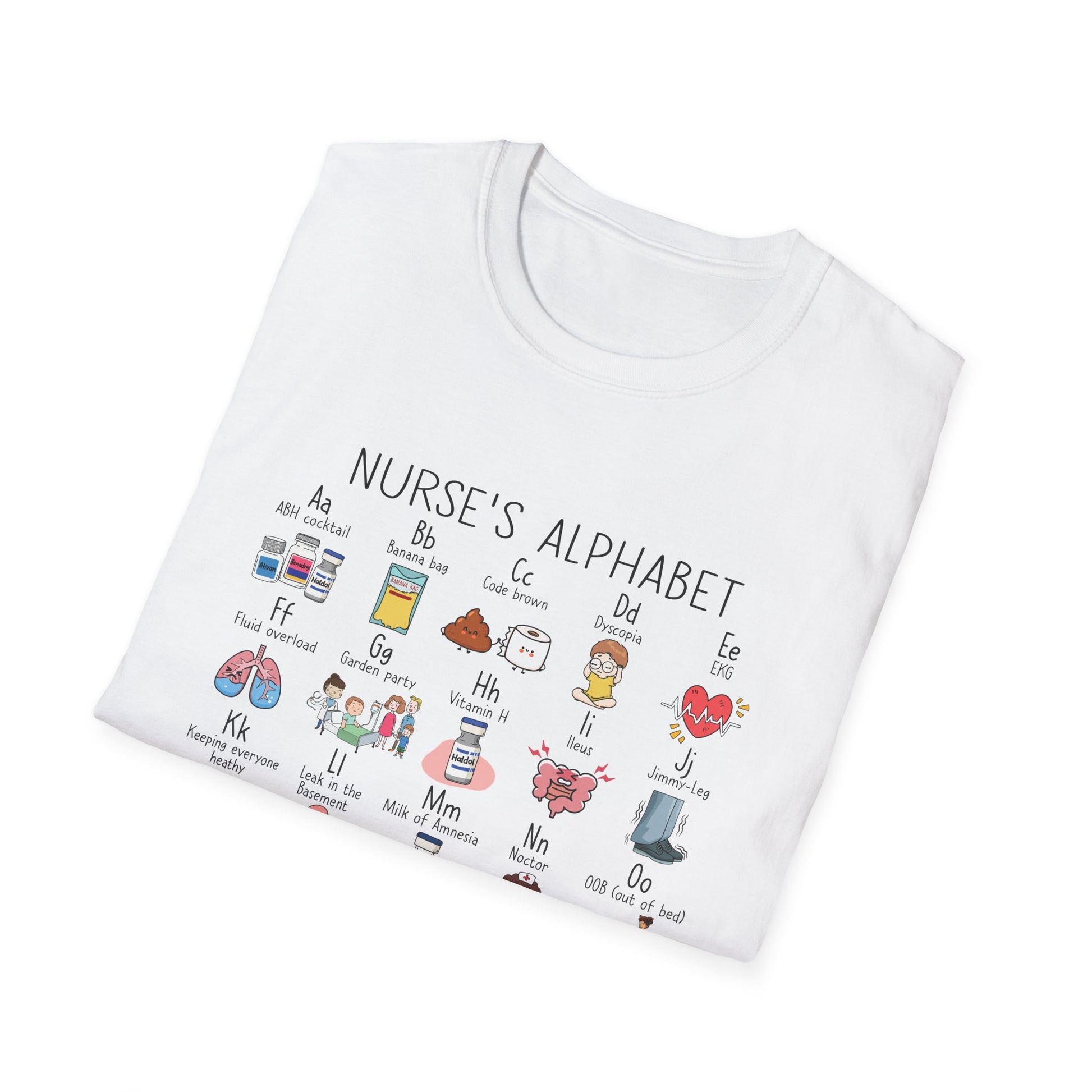 Nurse Alphabet Shirt, A-Z Nursing Letters Tee, RN LPN CNA Gift, Nurse Life Shirt, Cute Scrub Top, Healthcare Worker T-Shirt, nurse gift