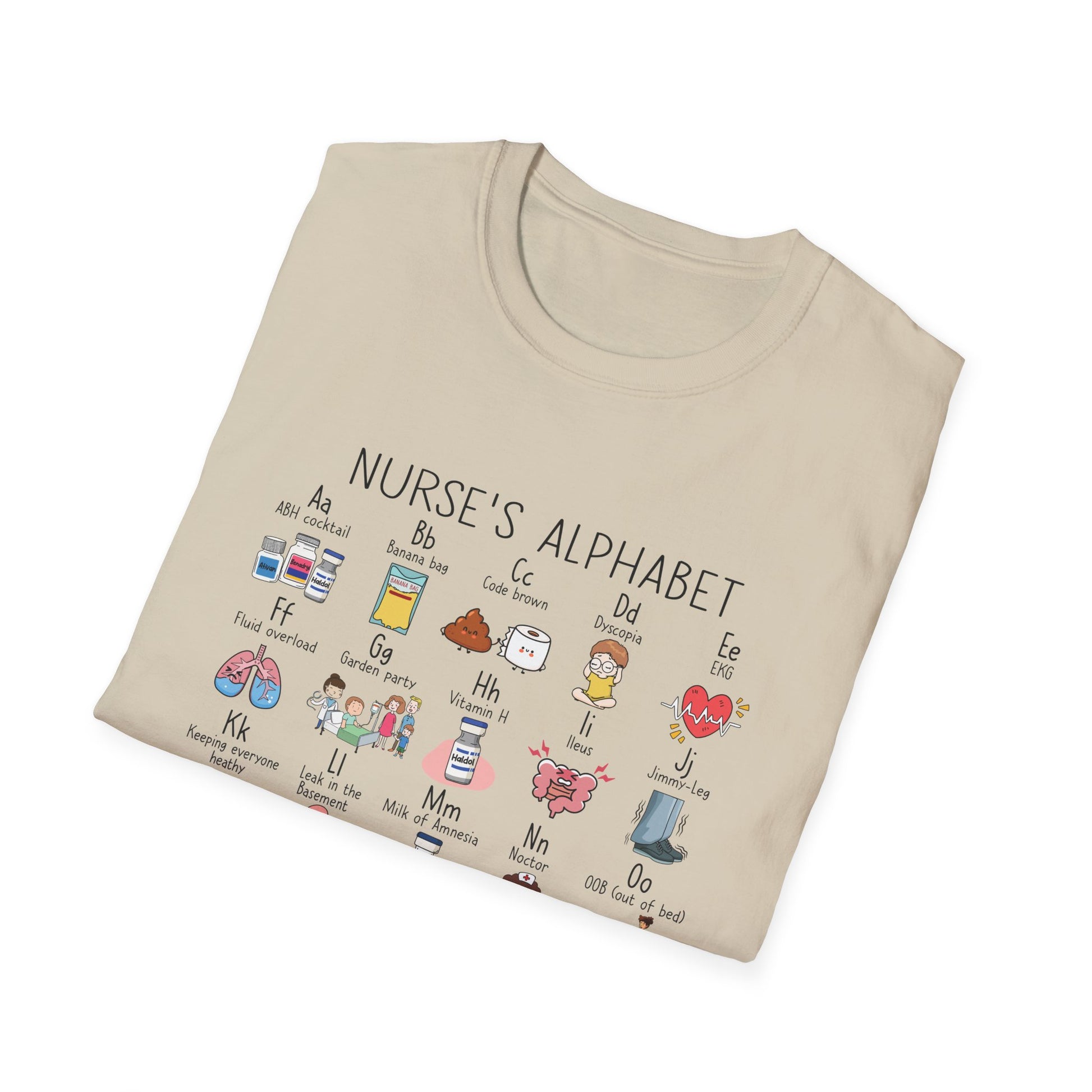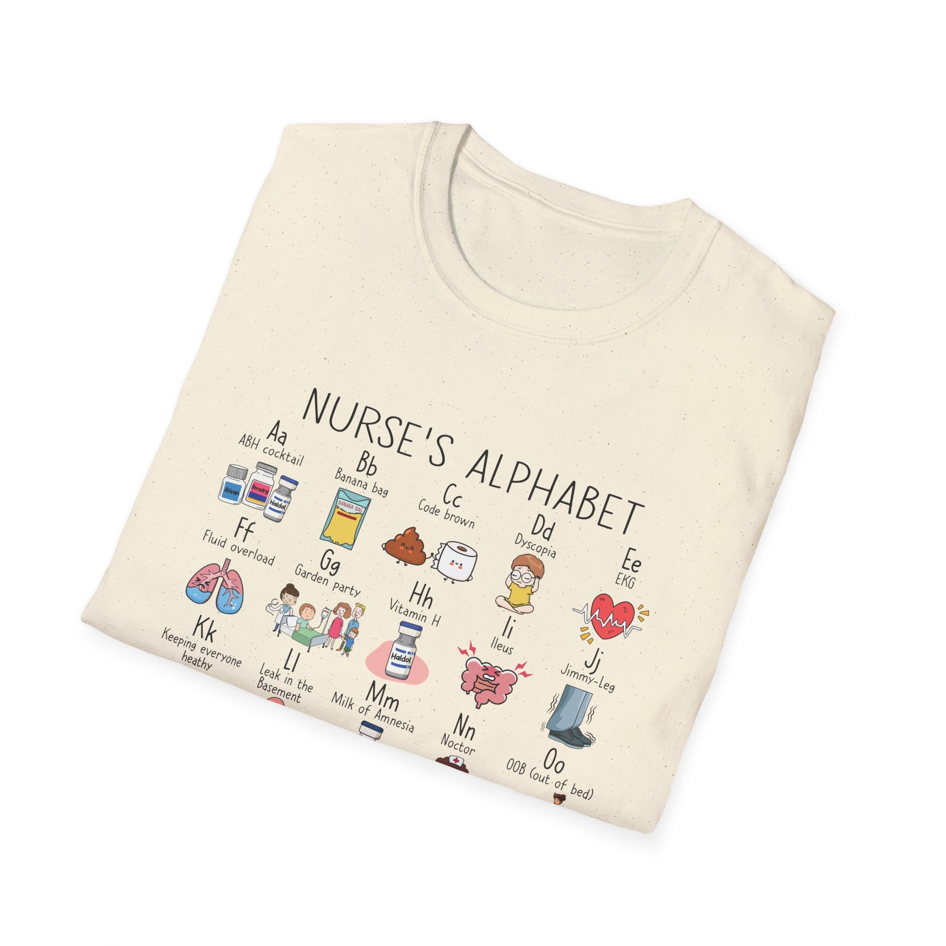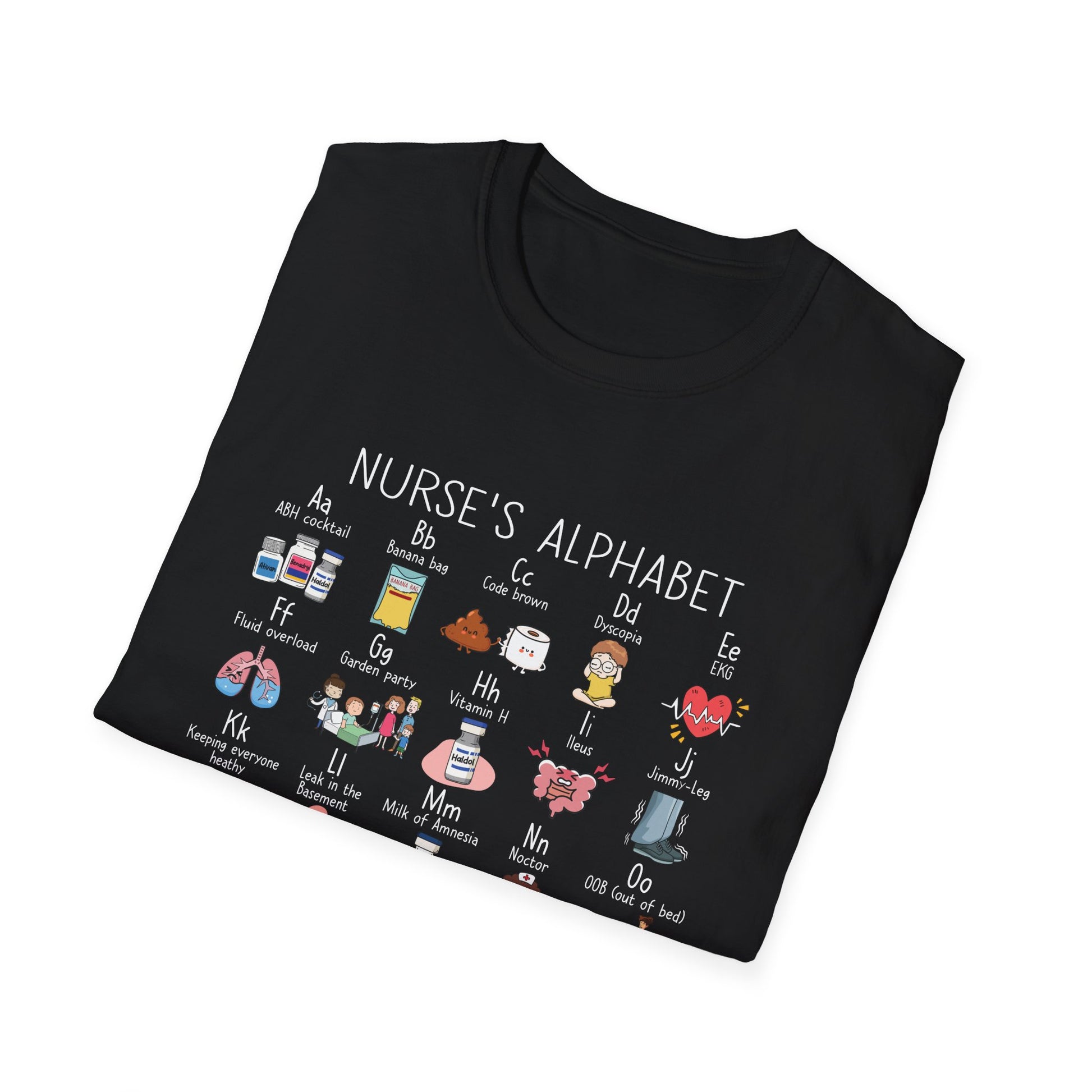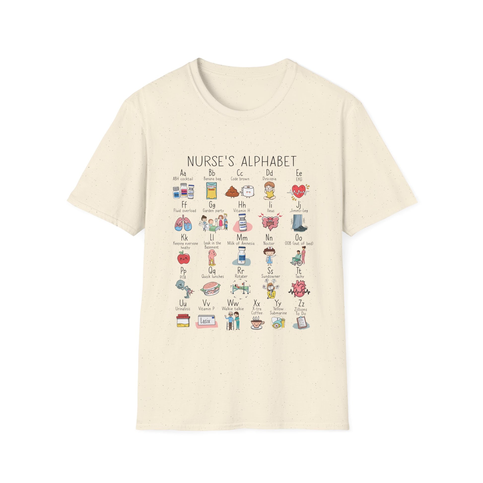 Nurse Alphabet Shirt, A-Z Nursing Letters Tee, RN LPN CNA Gift, Nurse Life Shirt, Cute Scrub Top, Healthcare Worker T-Shirt, nurse gift