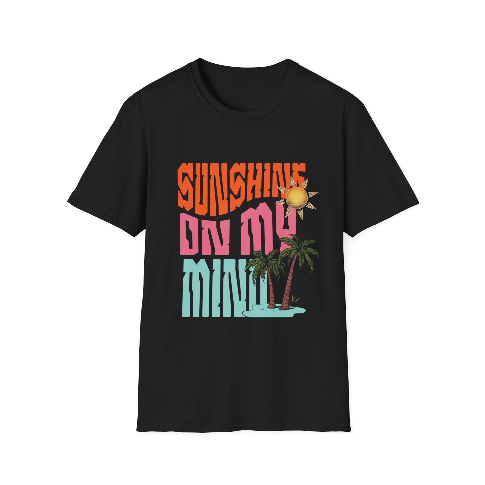 Sunshine on My Mind T-Shirt - Retro Sun Tee, Summer Aesthetic Shirt, Boho Beach Shirt, Happy Sun Graphic Tee, Positive Vibes Shirt